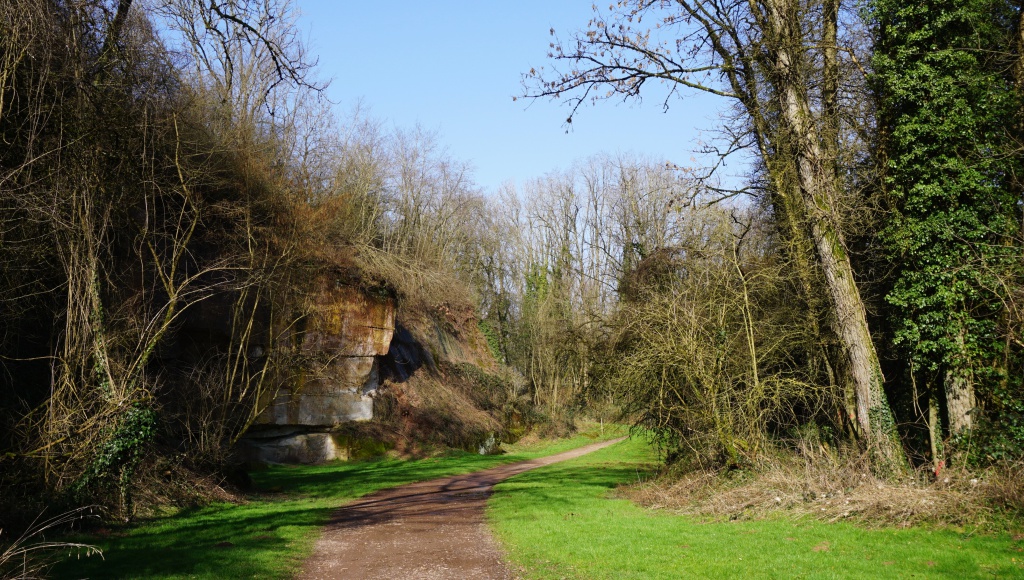 Die idyllische Rosch mit ihren alten Sandsteinbrüchen am Weg zur Teufelsburg, in denen bereits um 1350 zum Bau der Teufelsburg, sowie vor 1680 zur Errichtung der Festungsstadt Saarlouis Steine gebrochen wurden.